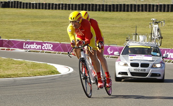 El principal resultado de la delegación española lo consiguió el tándem Christian Venge-David Llauradó, que se hizo con la medalla de oro en la contrarreloj el primer día del ciclismo en ruta, disputado en un circuito de superbikes de ocho kilómetros en Brands Hatch, y retuvo así el primer puesto de Pekín 2008 en esta misma prueba.