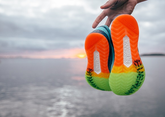 Con un diseño también muy llamativo, semi-transparente, con tacos distribuidos en tres líneas y en forma de espiga y siguiendo con su sistema Tri-flex, que según la marca confiere una  mayor adaptabilidad al terreno y mejor flexibilidad. En cuanto al caucho, Saucony garantiza una alta durabilidad del compuesto. Su comportamiento en carrera, con agarre y tracción correctos tanto en asfalto como en tierra; cuidado en superficies asfaltadas mojadas y lisas.