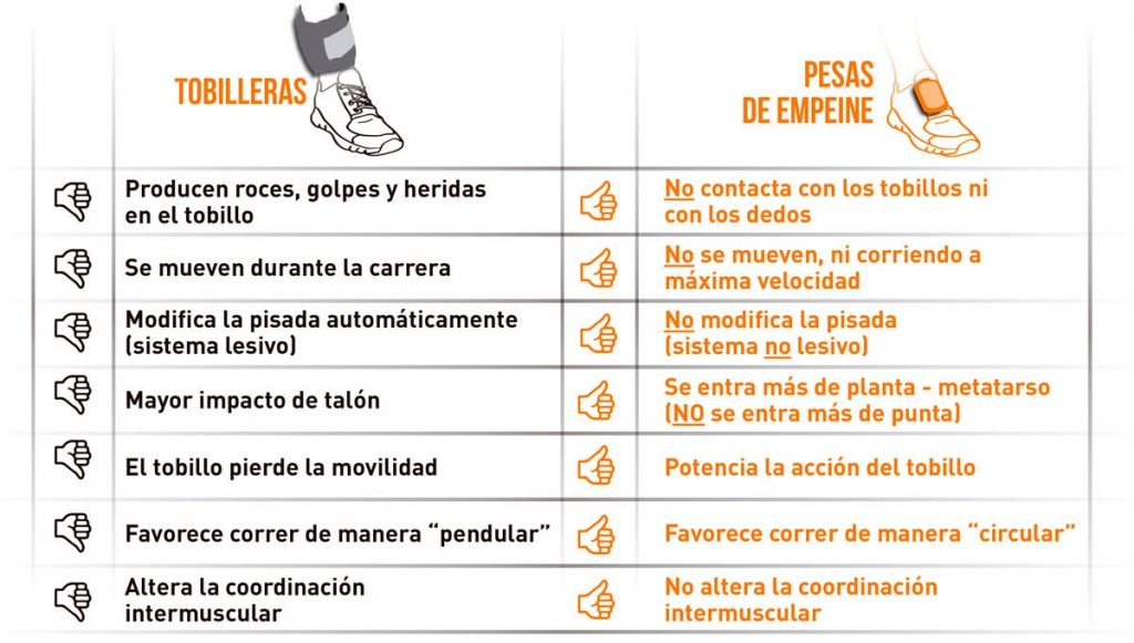 - La diferencia es que el nadador puede dejar sus palas en el borde de la piscina. En cambio el corredor, siempre que no esté en pista o en circuito, no puede dejar las pesas en ningún lugar. Esa es la razón por la que se recomienda usar el cinturón.