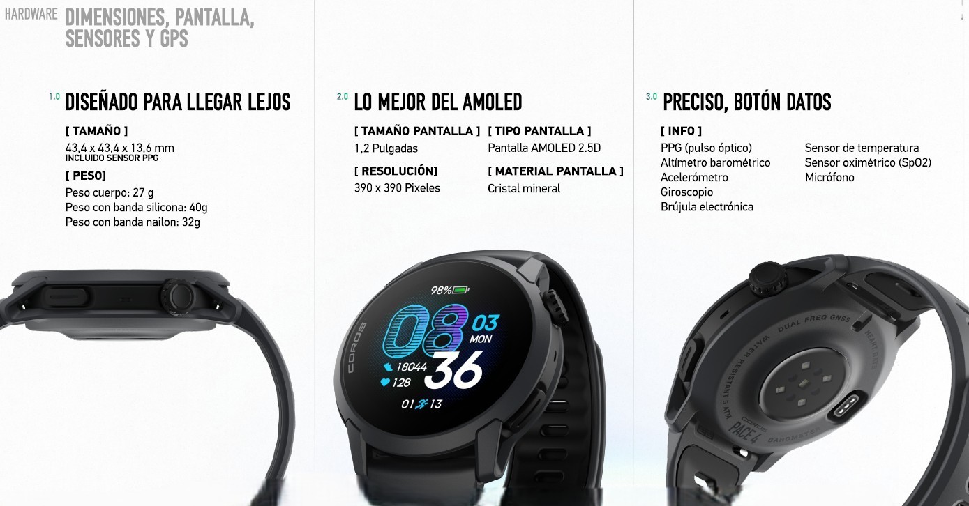 - Ingeniería ultraligera: con solo 32 g con la correa de nailon, PACE 4 es un compañero de entrenamiento increíblemente ligero y potente.