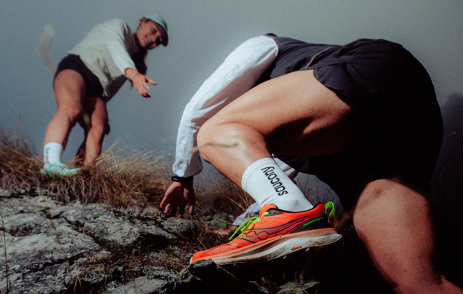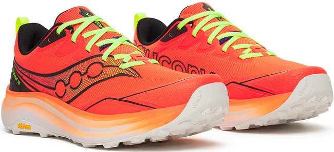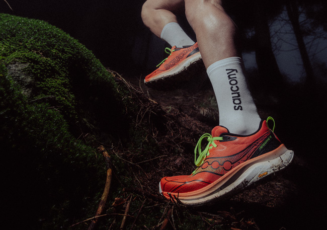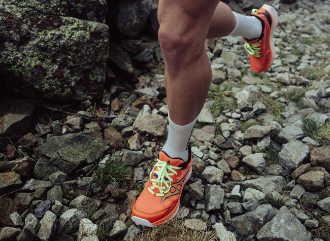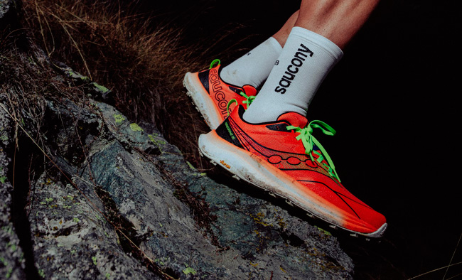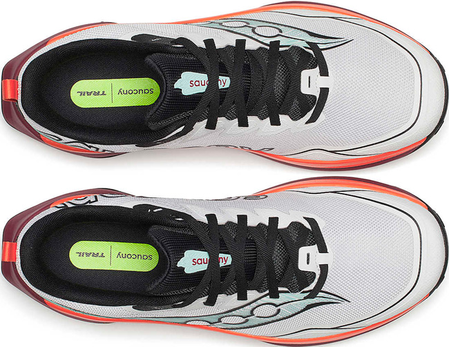 Saucony y amortiguación estable van de la mano. No en vano, incorpora su espuma PWRRUN, de producción propia, en la mediasuela de modelos de asfalto y trail. Este exclusivo compuesto de notable densidad, promedia la absorción de energía recibida del peso e impulso del corredor, facilitando una automática recuperación/reacción del polímero frente a la siguiente zancada. Se trata de una amortiguación adaptativa, equilibra la absorción del impacto y retorna la energía como un “resorte”. Tras haber probado diferentes modelos trail de Saucony durante varias temporadas, podemos asegurar que este foam no coge vicios por fatiga de material que afecten a la estabilidad, tampoco pierde cualidades por usadas que estén las zapatillas. Mención especial merecen las plantillas, por estar fabricadas con el mismo compuesto usado en la mediasuela (PWRRUN, grado plus). Saucony aporta así amortiguación extra en los vuelos más verticales sobre senderos técnicos, sin temor a la Ley de la Gravedad.