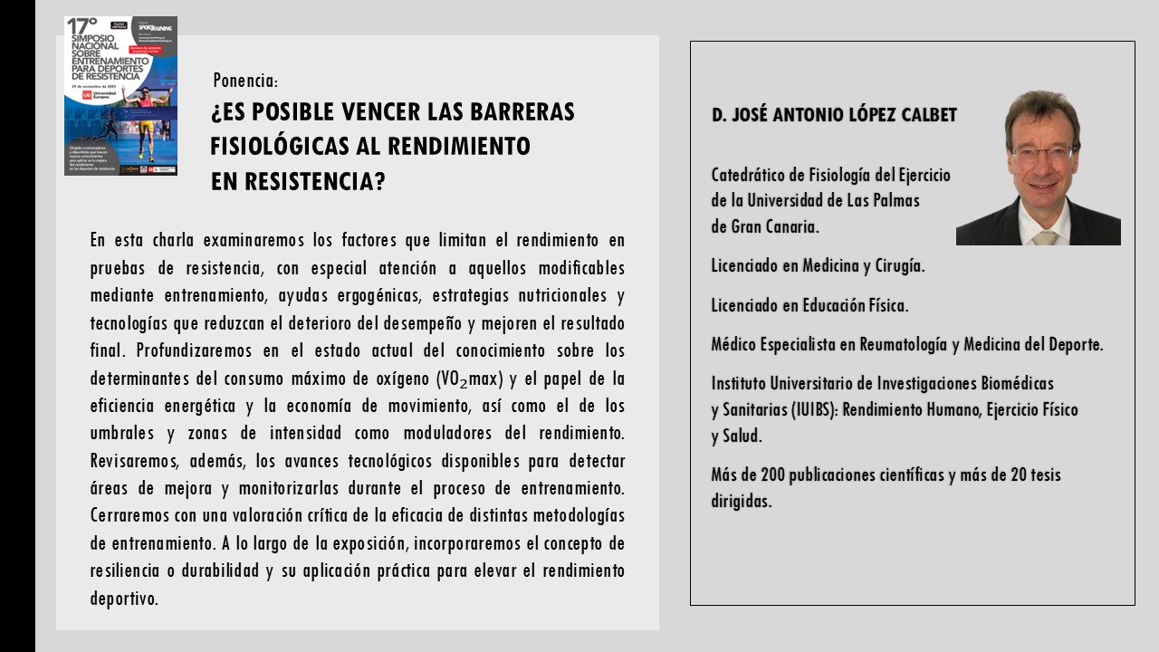 Tras el éxito cosechado en las ediciones anteriores, el próximo 29 de noviembre de 2025 se celebrará el 17º SIMPOSIO NACIONAL SOBRE ENTRENAMIENTO PARA DEPORTES DE RESISTENCIA, organizado por Sport Training con la colaboración de la Universidad Europea (UE) y el apoyo de All In Your Mind. El Simposio está dirigido tanto a entrenadores y profesionales de la actividad física, como a deportistas autodidactas que buscan nuevos recursos en materia de entrenamiento para poder llevar a la práctica.